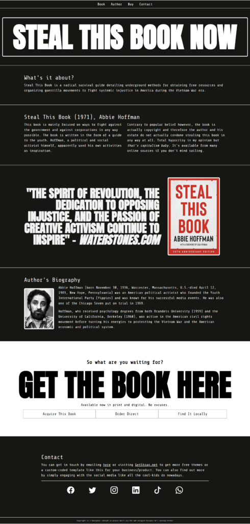 A free, hand-coded, minimal, brutalism-styled, black and white template built with Bootstrap 5.3 one page website.
